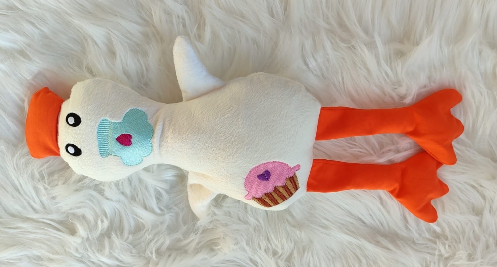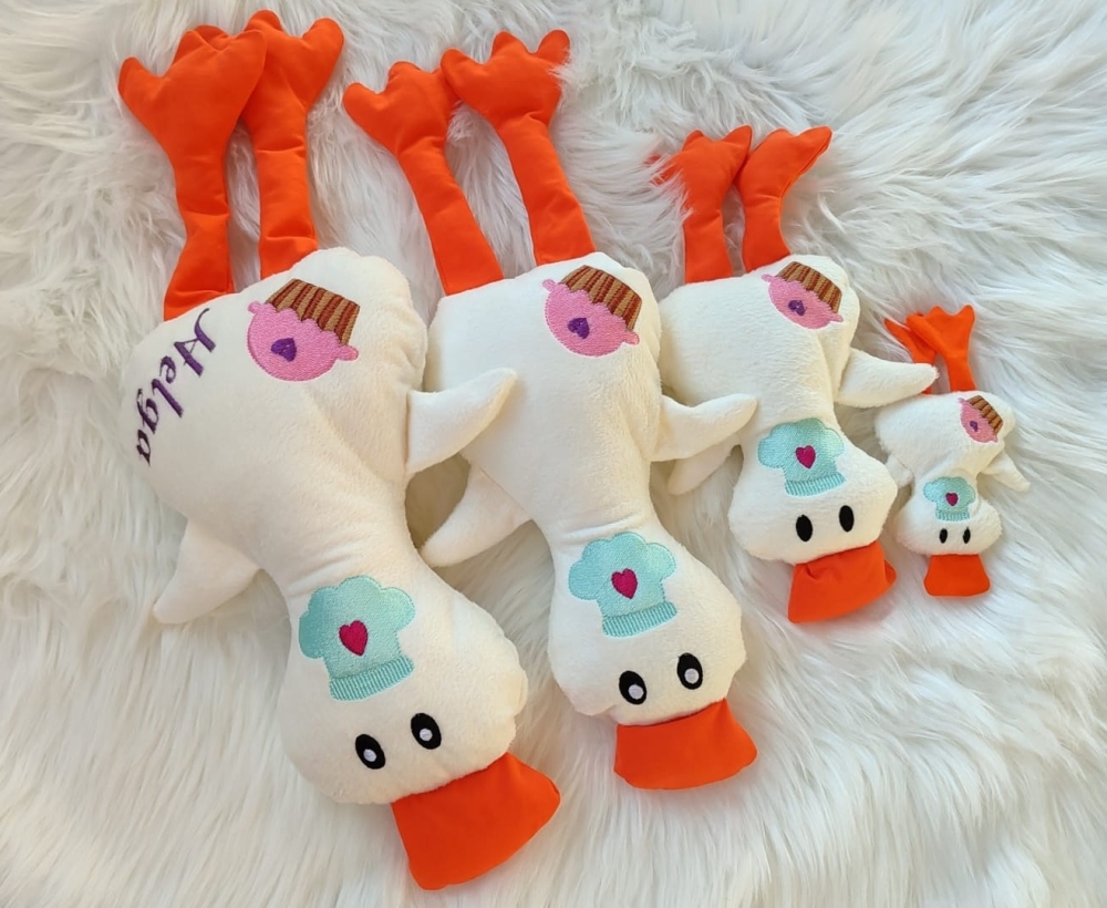 Zaubert aus diesen tollen Dateien süße Schlüsselanhänger, Kuscheltiere, Rasseln, Schnullertiere, Körnerkissen und vieles mehr. Im 30x20er Stickrahmen gestickt wird die Gans etwa einen halben Meter lang!!!