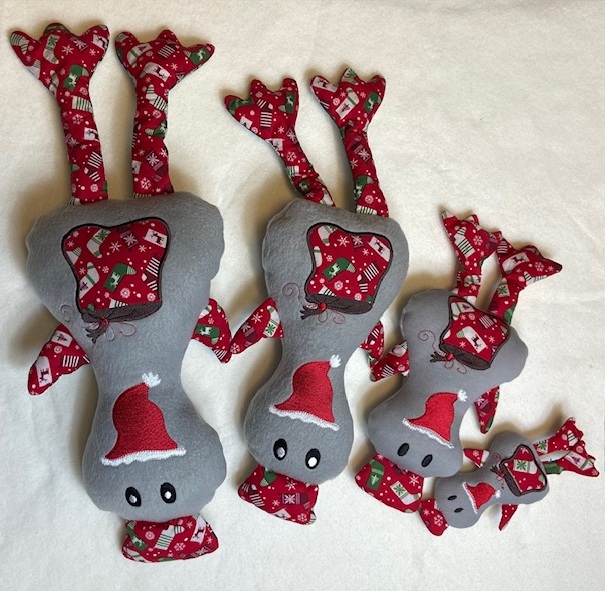 Hier wird eine ITH Gans mit Motiv NIKOLAUS angeboten. Sie hat auf dem Rücken eine praktische Appli-Tasche, in die Ihr Euer Geldgeschenk oder einen kleinen Gutschein etc. hineinstecken könnt. Die Stickdateien könnt Ihr in folgenden Größen auswählen: 10x10, 18x13, 26x16, 30x18 oder 30x20cm. Ihr erhaltet in jeder Größe die Anbauteile in "Schnellversion", d.h. alle Teile werden in gleicher Farbe gestickt und zusätzlich in einer Version, in der Ihr jedes Teil in einer andere Farbe sticken könnt. Ab der Größe 26x16 ist für jedes Motiv noch zusätzlich eine Sequenz für einen Hotelverschluss und ein Inlett dabei, so dass Ihr auch Körnerkissen aus den Dateien herstellen könnt. Für die 10er und 18er Gans erhaltet Ihr somit insgesamt 3 Dateien. Ab der Größe 26x16 erhaltet Ihr jeweils 5 Dateien. Wie Ihr seht, es wurde an alles gedacht. Vor allem ist es vorteilhaft, dass Ihr bei den Gänsen jedes Motiv einzeln auswählen könnt. Die Enten bekommt Ihr dagegen in großen Sets mit jeweils satten 25 Motiven im Shop zu kaufen.